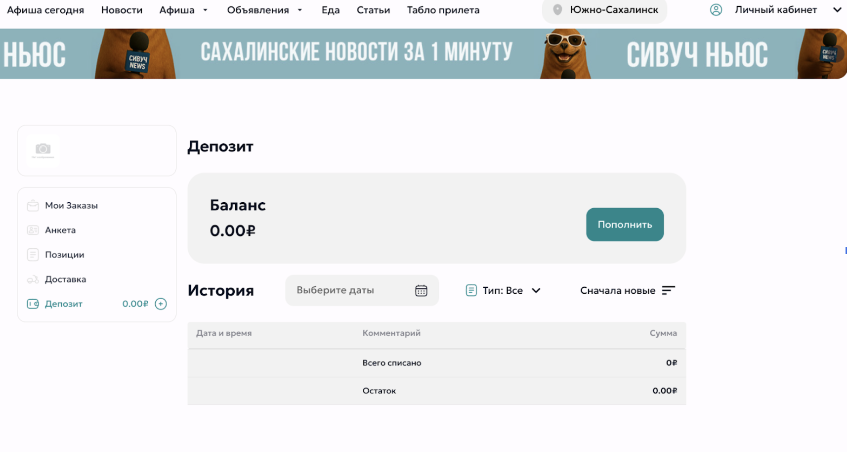 Шаг 7. Пополняем депозит https://sakh.life/food-profile/deposit